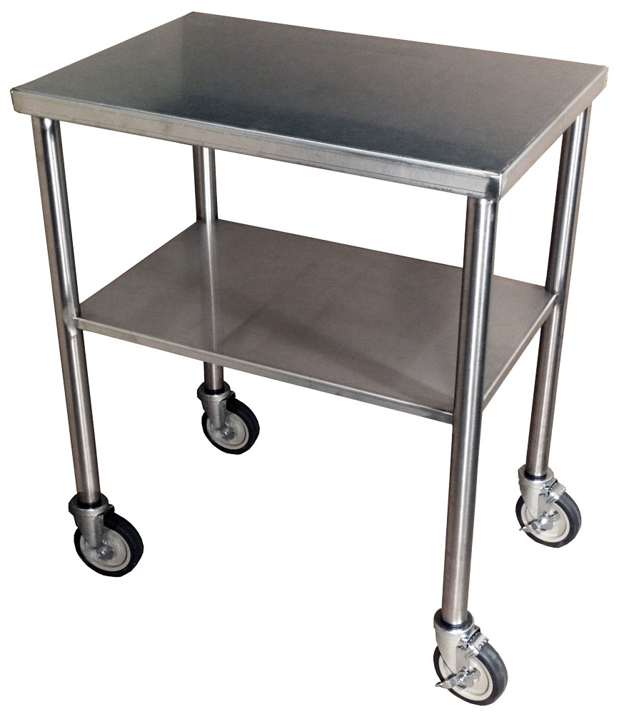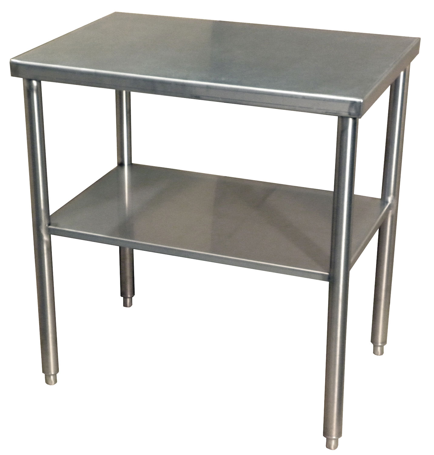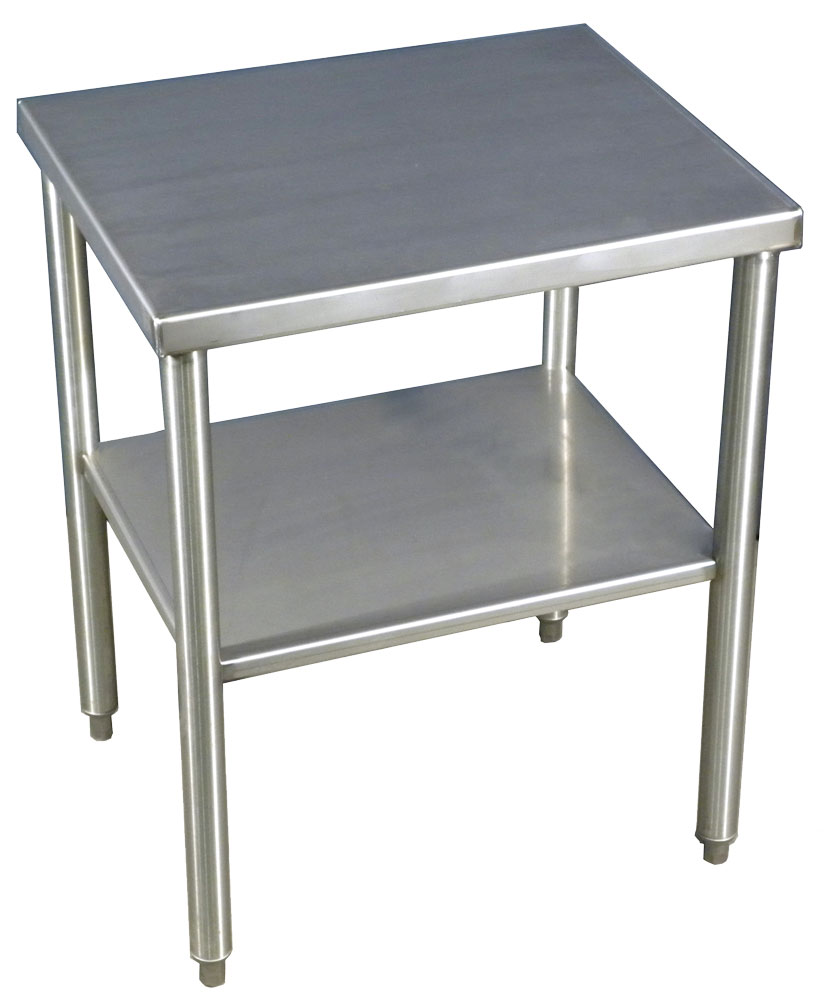 The large 20″ x 24″ work surface is fabricated from heavy-duty 14 gauge T-304 Stainless steel. Features a full size middle storage shelf and all welded construction.