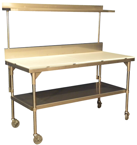 Designed for use in restaurants, bakeries, and other food preparation or processing environments, our stainless steel multi-option table offers the ultimate in versatility. This cost-effective and fully customizable table comes in lengths of 6 or 8 feet, with either a poly or stainless steel table top, and can be outfitted with our optional standard table accessories at any time.