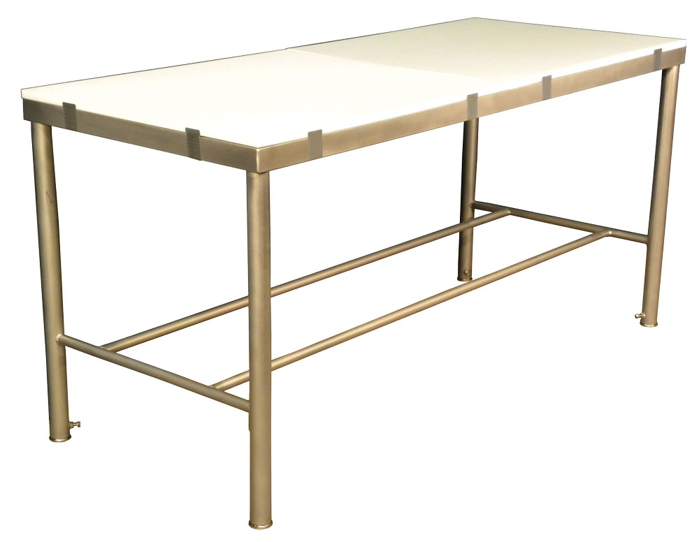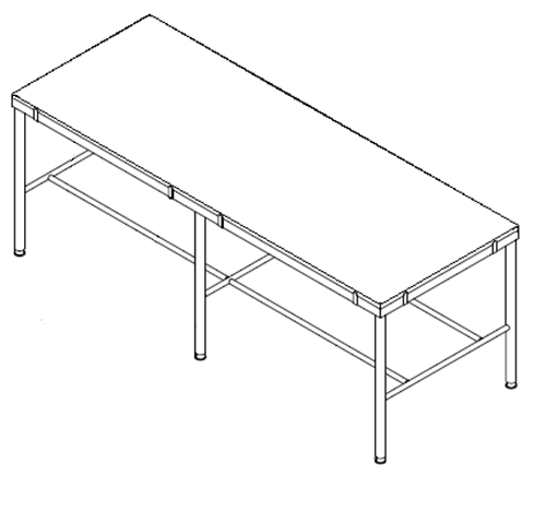 Table frames are fully welded and made of heavy T-304 Stainless Steel structural angle and pipe. The standard width is 36″ and the available lengths are 6′, 8′ and 10′. Cutting boards provided are 3/4″ thick. The board tabs that are welded onto the table will hold boards up to 1″ thick. Custom sizes are available.